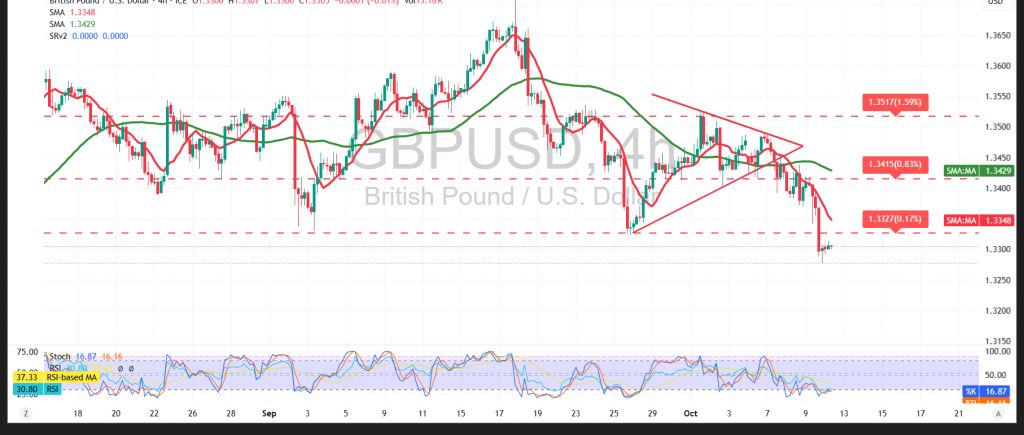 نور تريندز / التحليل الفني ودراسة حركة الاسعار / الباوند يتعرض لضغط بيعي 10-10-2025