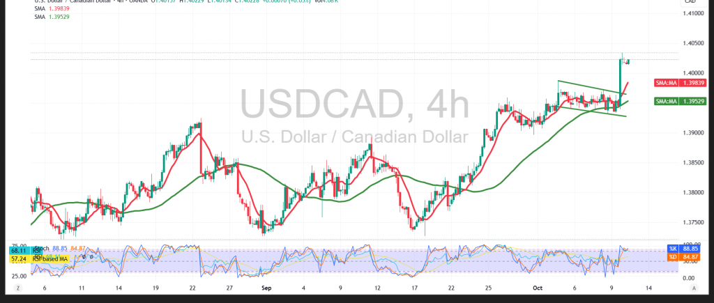 يواصل زوج الدولار كندي USD-CAD الصعود التدريجي نحو الأعلى وينجح في إختراق مستوى مقاومة الحاجز النفسي 1.4000 ملامساً الهدف المطلوب 1.4020 مسجلاً أعلى مستوى له 1.4034.
