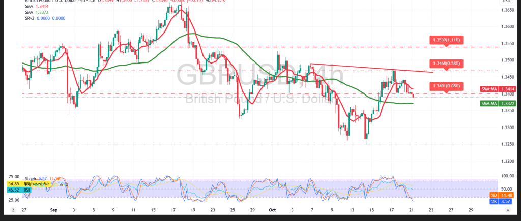 نور تريندز / التحليل الفني ودراسة حركة الاسعار / الباوند يبدأ بالضغط على الدعم 21-10-2025
