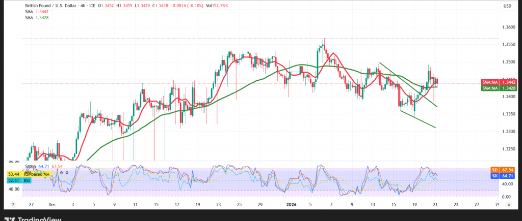 | الدعم الأول: 1.3400 | المقاومة الأولى: 1.3485 |