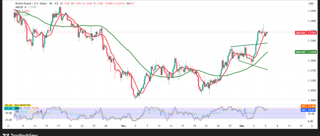 نور تريندز / التحليل الفني ودراسة حركة الاسعار / الباوند يتقدم على حساب الدولار 5-12-2025