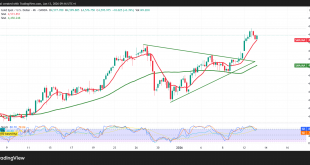 السعر مستقر فوق المتوسط المتحرك البسيط لفترة 50 يوم بجانب عودة مؤشر القوة النسبية لإرسال إشارات إيجابية على الفواصل الزمنية القصيرة.