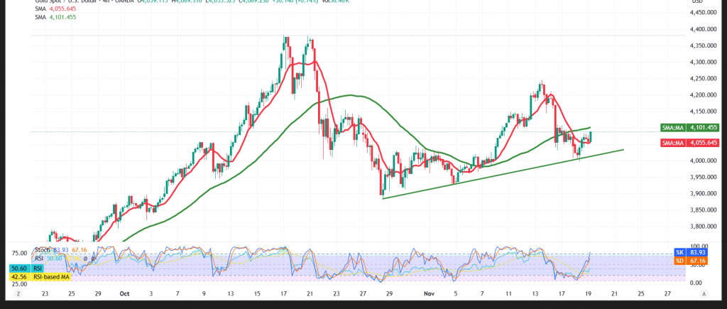 نور تريندز / التحليل الفني ودراسة حركة الاسعار / الذهب حائر بين الثيران والدببة! من ينتصر؟ 19-11-2025