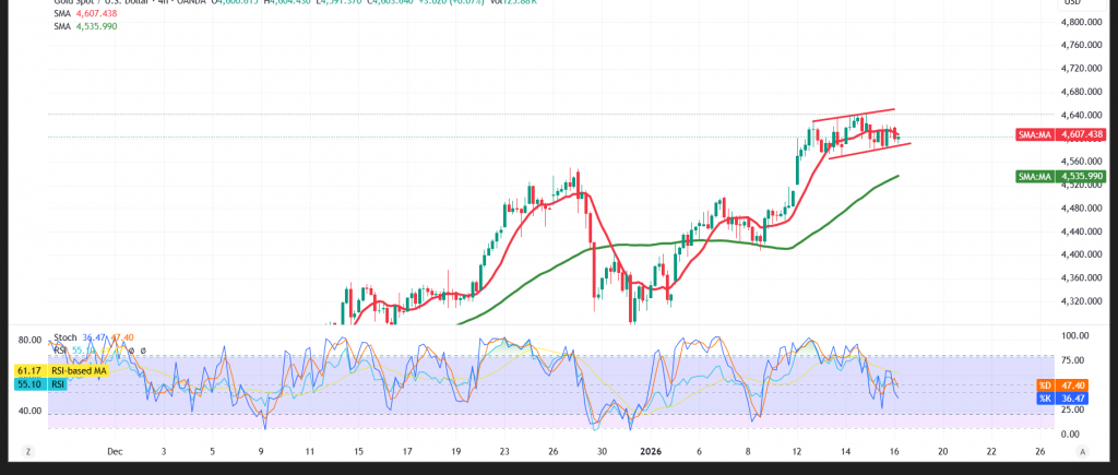 سيطر اتجاه جانبي مؤقت على تحركات أسعار الذهب XAU/USD، بعد أن واجه السعر منطقة عرض قوية بالقرب من قمته الأخيرة عند 4642 دولارًا للأونصة، ما دفع السوق للدخول في مرحلة تماسك وانتظار لإشارات أوضح.