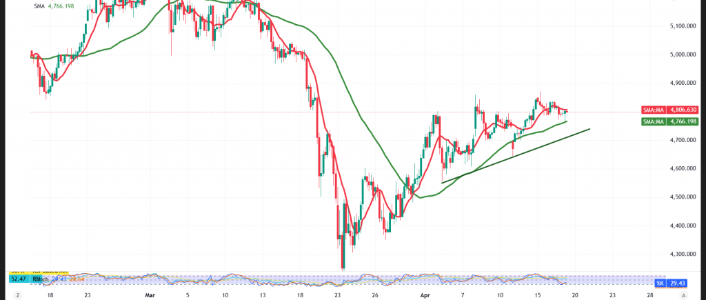 مع ضرورة تأكيد اختراق مستوى المقاومة 4800 لتعزيز فرص الصعود.