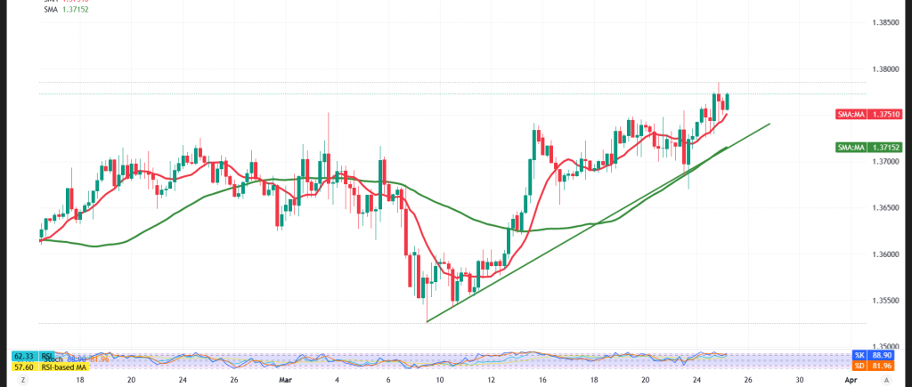 إتجاة صاعد قوي على المدى القصير يسيطر على تحركات زوج الدولار كندي USD-CAD  مسجلاً أعلى مستوى له 1.3785.