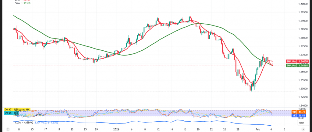 | الدعم الأول: 1.3610 | المقاومة الأولى: 1.3705 |