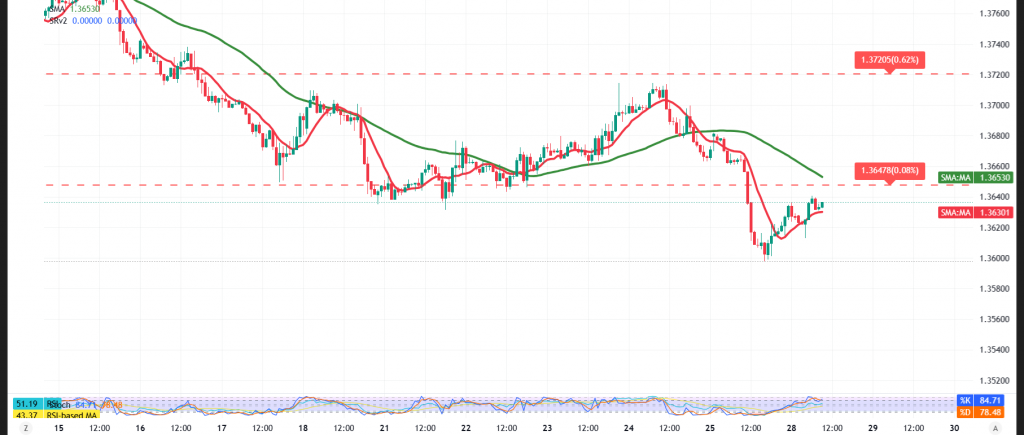 الدعم الأول: 1.3590 المقاومة الأولى: 1.3680