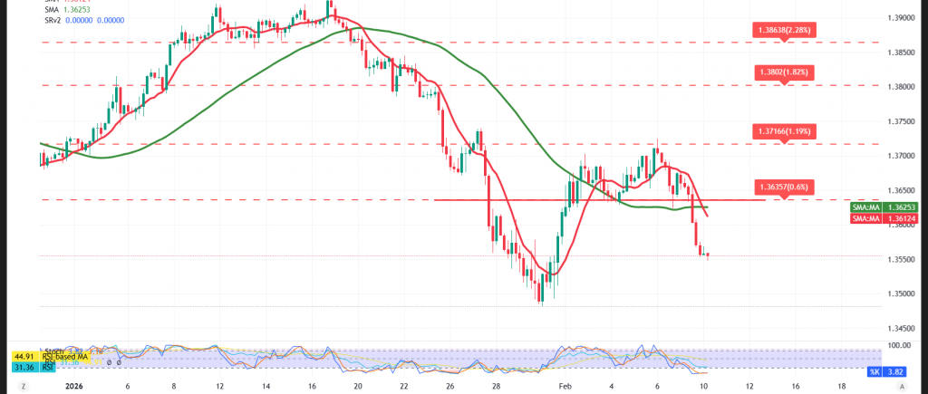 | الدعم الأول: 1.3510 | المقاومة الأولى: 1.3640 |