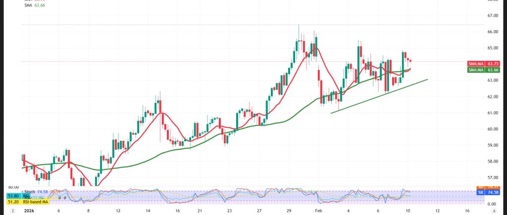في المقابل عودة ثبات التداول من جديد دون 63.70 قد يضع السعر تحت ضغط سلبي نحو إعادة إختبار 62.90.
