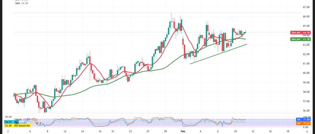 | الدعم الأول: 63.80 | المقاومة الأولى: 64.80 |