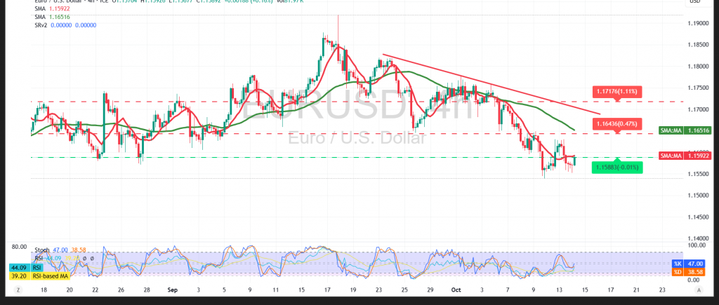 نور تريندز / التحليل الفني ودراسة حركة الاسعار / اليورو تحت ضغط الدولار 14-10-2025