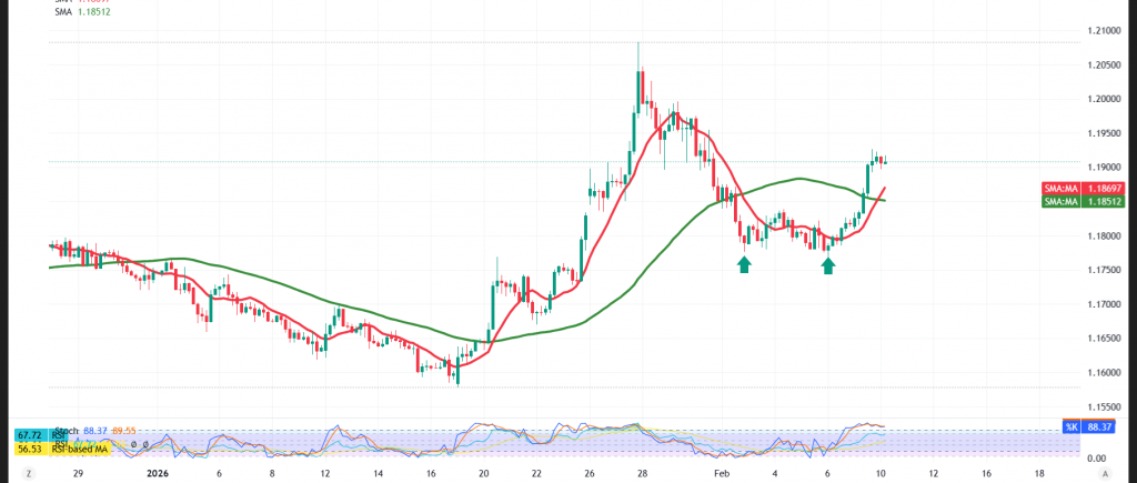 | الدعم الأول: 1.1840 | المقاومة الأولى: 1.1955 |