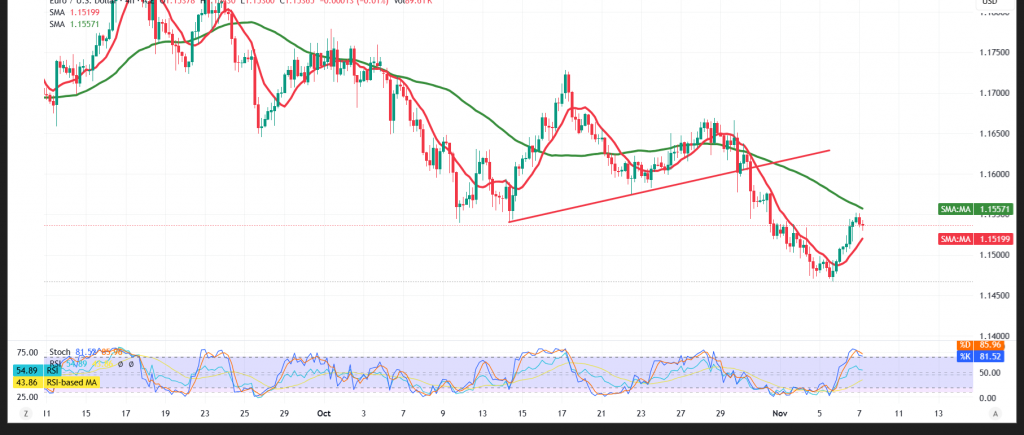 | الدعم الأول: 1.1500 | المقاومة الأولى: 1.1560 |