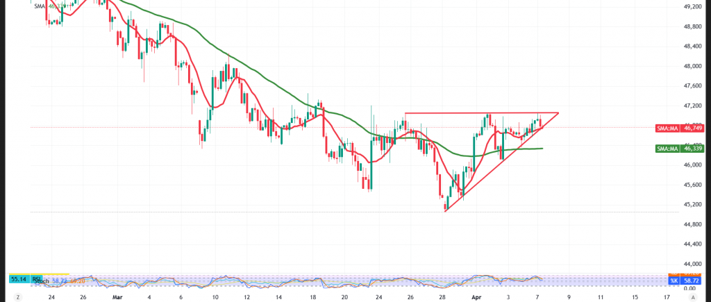 من هنا وبثبات التداول اليومي دون 47055 يكون الإتجاة الهابط هو الأكثر تفضيلاً خلال تعاملات الجلسة مستهدفين 46600 هدف اول وقد تمتد الخسائر ناحية 46570.