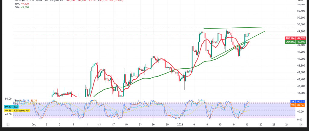 وجد مؤشر داوجونز الصناعي أرضية دعم جيدة بالقربب من مستوى 49290 والتي أجبرته على تشكيل إرتداد فني صاعد.