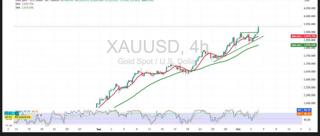 أرقام قياسية جديدة تواصل أسعار الذهب XAU-USD تحقيقها ليبدأ أولى تداولات الأسبوع الجاري على إرتفاعات حادة خلال التعاملات الآسيوية مسجلاً 3933 دولاراً للأونصة.