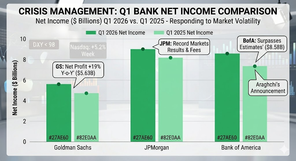 بنك أوف أمريكا: سجل ربحا صافيا بلغ ٨.٥٨ مليار دولار في الربع الأول من ٢٠٢٦، بارتفاع ملحوظ عن العام السابق، وبإجمالي إيرادات ٣٠.٢٧ مليار دولار.