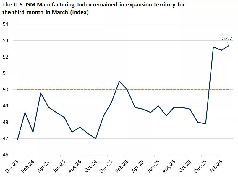 Manufacturing activity expanded, with the PMI at 52.7, signaling sustained production growth despite external pressures.