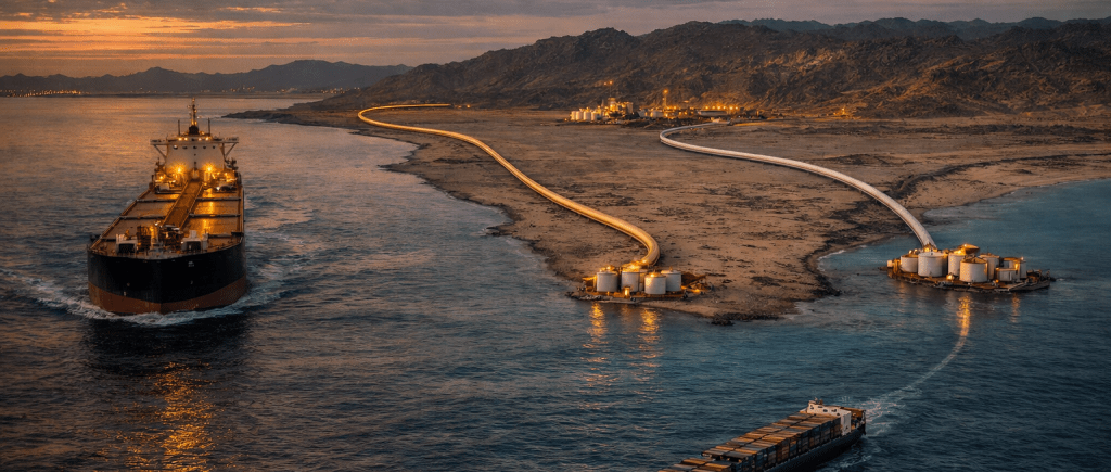 While the immediate impact on global energy and food prices has been severe, the crisis is also accelerating a historic shift. Gulf states, particularly Saudi Arabia and the UAE, are now rapidly building alternative infrastructure to bypass the strait entirely. This evolution signals a future in which global trade in energy and essential commodities will no longer hinge on Hormuz.