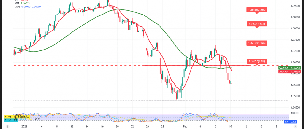 As long as trading remains below 1.3600 — and more broadly beneath the 1.3640 resistance zone — the bearish trend is expected to persist, with 1.3510 standing as the next initial downside target.