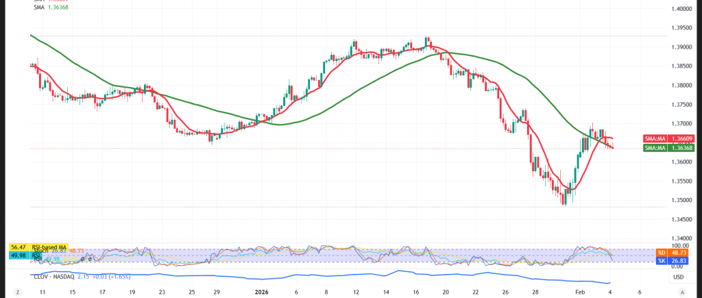 As long as price action remains above the 1.3610 support level — and more broadly above 1.3590 — this is considered a constructive signal. Under this scenario, the pair could target 1.3680 as an initial upside objective. A sustained break above this level would further strengthen recovery prospects, opening the way toward 1.3710.