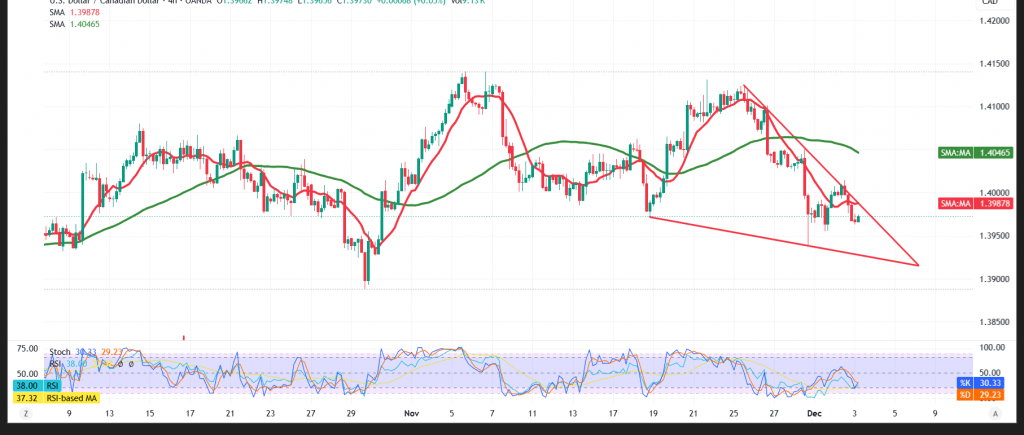 The USD/CAD pair saw a sharp decline after failing to sustain trading above the key psychological resistance at 1.4000, pushing the pair firmly into a bearish trend.