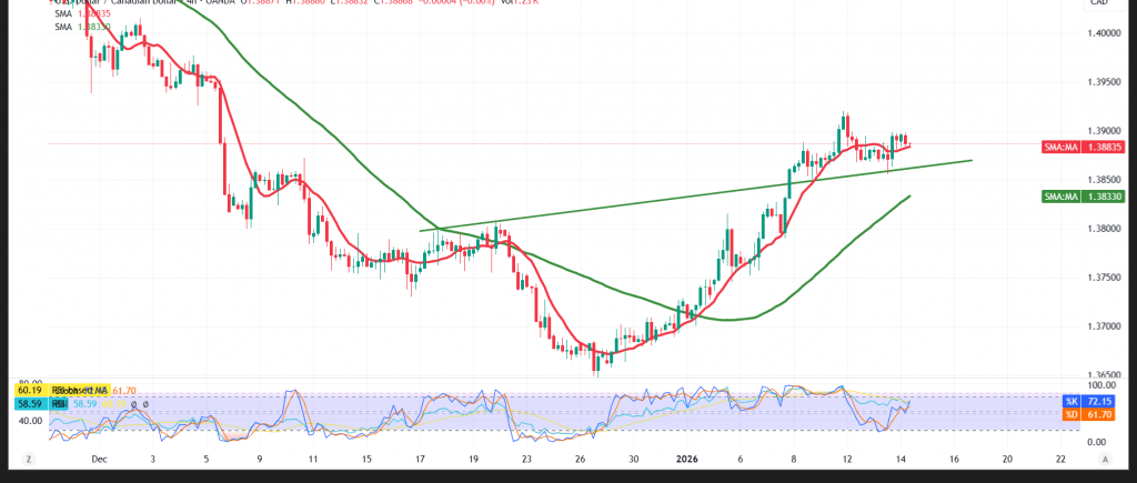 As long as price remains above the immediate 1.3850 support — and more importantly above the broader 1.3800 zone — the upward trajectory remains valid. A break above 1.3900 would likely accelerate gains toward 1.3940, with scope for extension toward 1.3970.