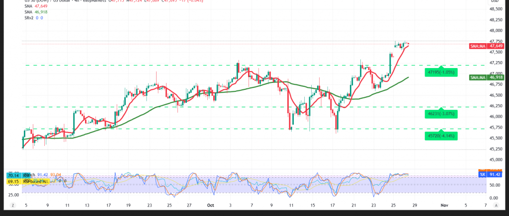 A decisive break and H4 close below 47,570 would temper the bullish tone and expose a dip toward 47,450, where buyers may attempt to reassert control.