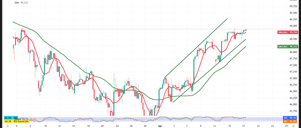 The Dow Jones Industrial Average on Wall Street recovered, aligning with our positive expectations, and is gradually rising towards our target of 48,930, reaching a high of 48,893.