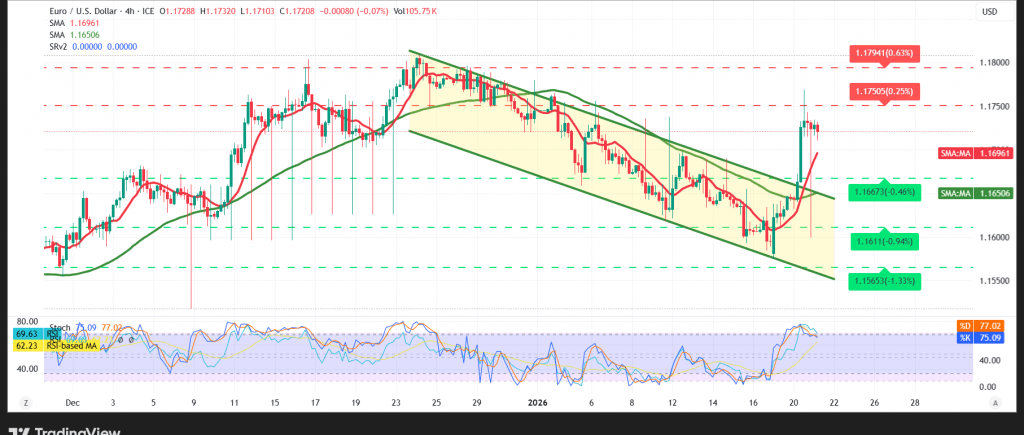 The EUR/USD pair advanced in the previous session, climbing toward the 1.1770 area and reinforcing the near-term bullish tone.