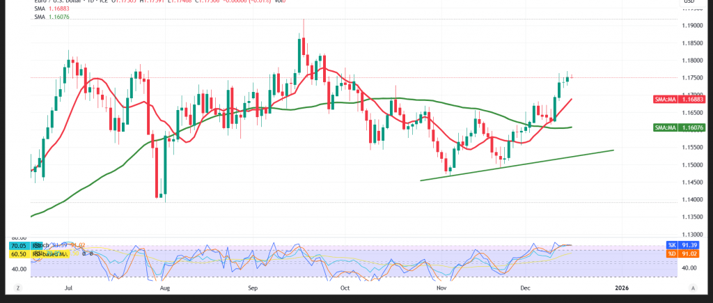 The pair has formed solid support near the psychological level of 1.1700, supported by price stability above the simple moving averages, which are acting as dynamic support, alongside trading within an ascending trendline. However, the Relative Strength Index (RSI) has started to lose upward momentum, which may limit the continuation of gains in the near term.