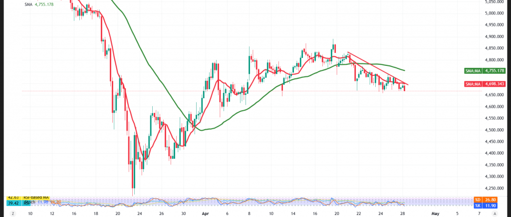 Gold prices (XAU/USD) endured a negative trading session during the previous period, encountering intense selling pressure that drove the metal beneath the pivotal support level at $4,700 — a development that underscores the continued dominance of sellers in the short-term landscape.