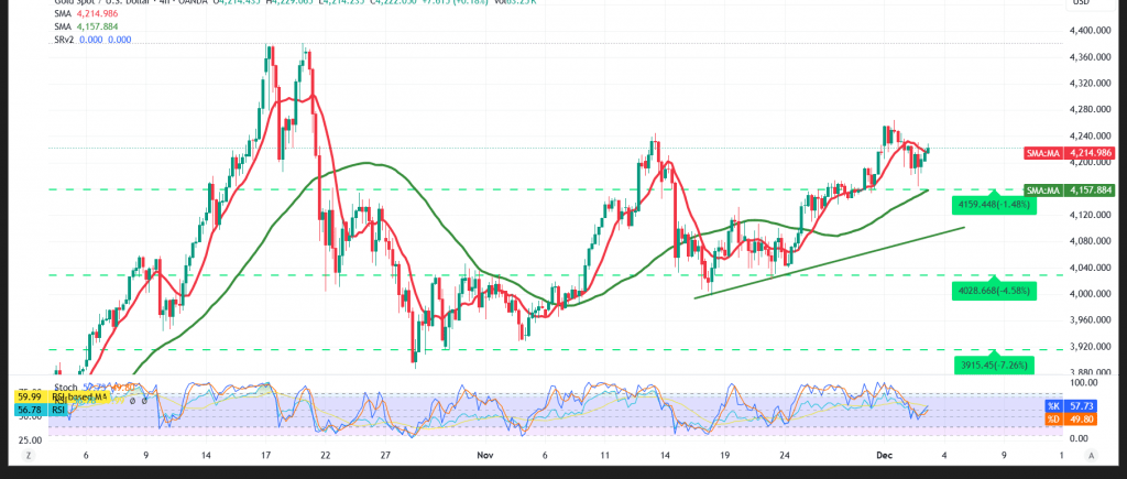 On the downside, a return to trading below $4,180 could introduce temporary pressure, targeting a retest of $4,135 as the first support, with $4,105 as the next potential level.
