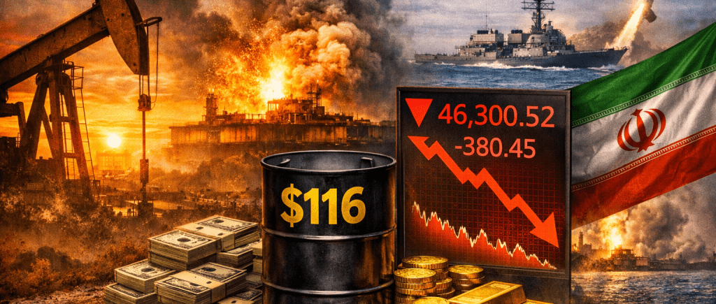 Home / Market Update / Commodities / Dow Slides as Oil Rockets Around $116 Amid Iran Tensions