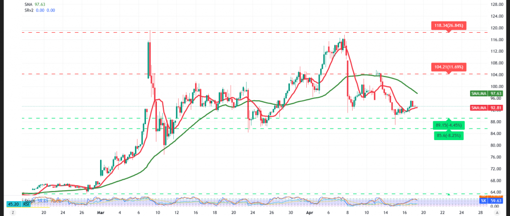 We maintain a bearish outlook, targeting 90.70 as an initial target. A break below this level could extend losses toward 88.50.