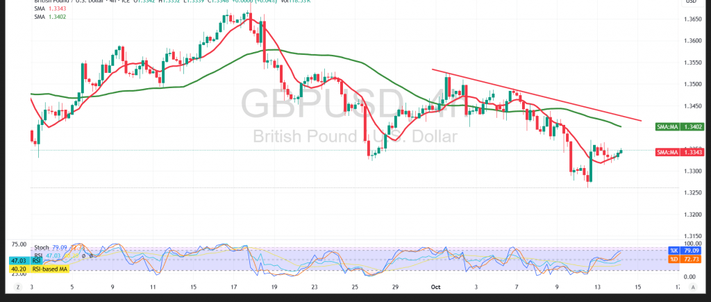 The GBP/USD pair extended its decline within the bearish trend anticipated in the previous report, reaching a low of 1.3315 as selling pressure continued to dominate market sentiment.