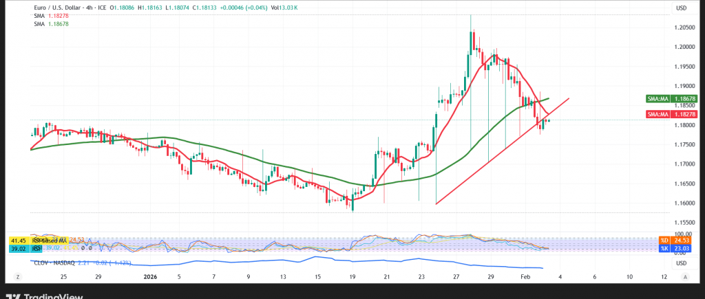 The EUR/USD pair advanced during intraday trading, attempting to recover part of the losses from previous sessions, and is currently stabilizing around the 1.1800 level.