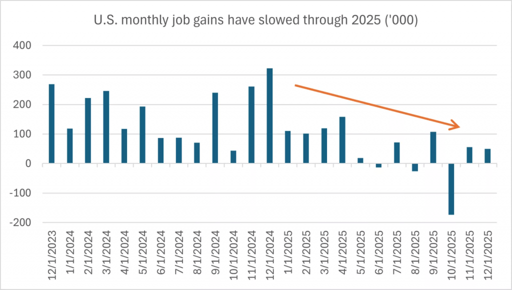 JOLTS job openings fell to 7.146 million, and layoffs hit a 17-month low. These indicators suggest a slowdown in job growth (averaging 49,000 monthly in 2025 vs. 168,000 in 2024), supporting a cautious monetary policy.